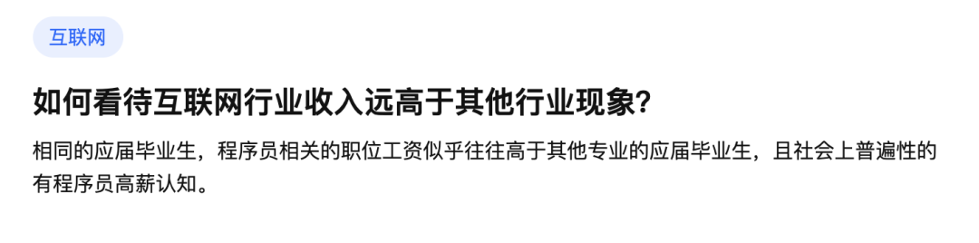 也许是迫于回答一边倒的形势,这个问题后来被改为了:“如何看待互联网行业收入远高于其他行业现象?”
