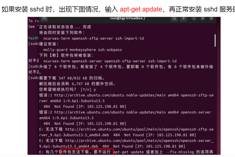 • 安装 sshd 服务:sudo apt-get install openssh-server