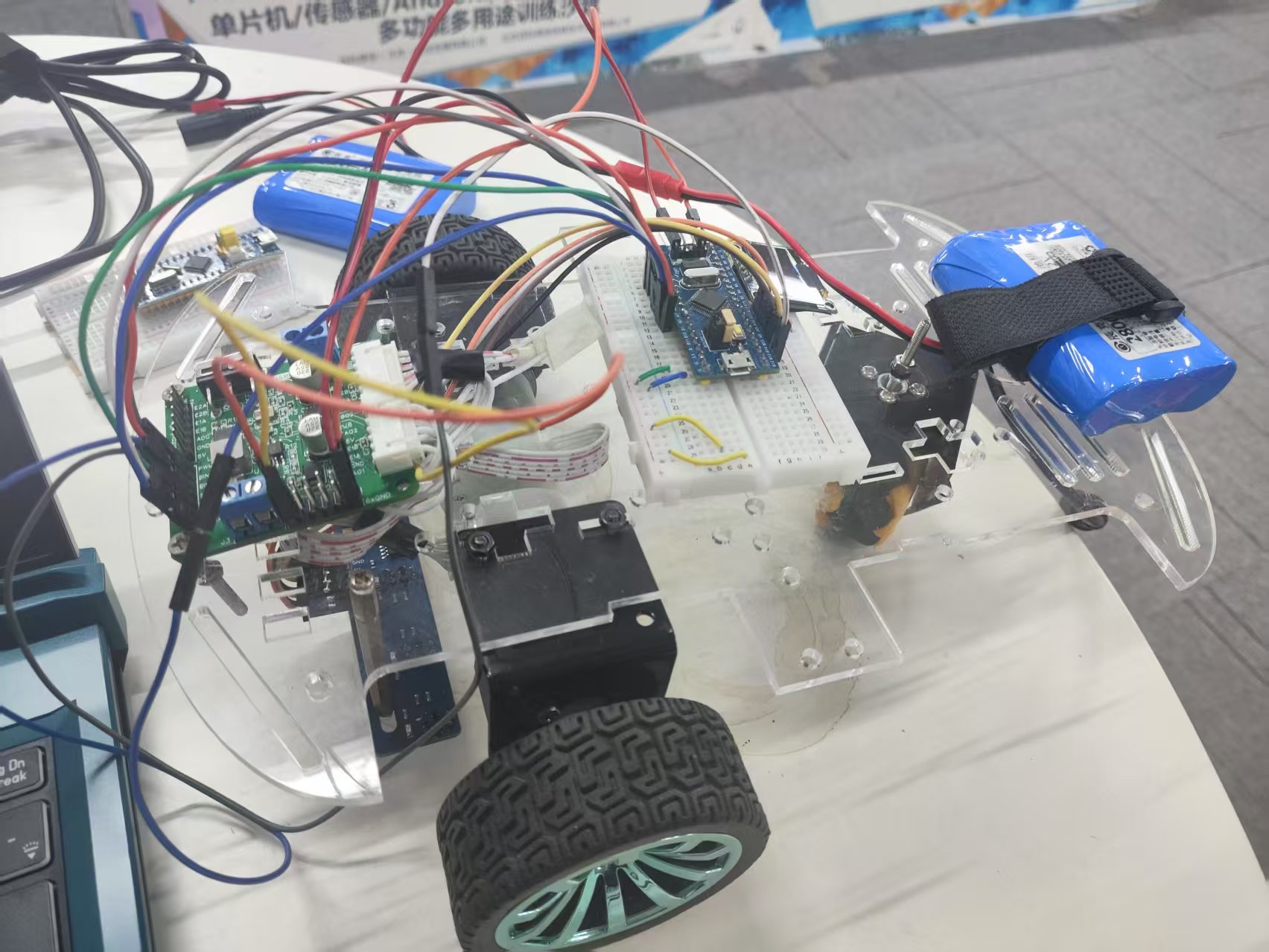 两路电机驱动模块:通过控制定时器的占空比来实现对轮子速度的控制,利用差速来实现拐弯。