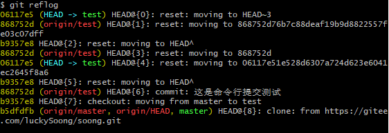 答:使用git reflog 可以查看执行命令的历史信息