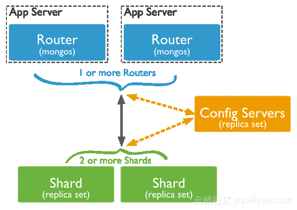 Sharded cluster由Shard、Mongos和Config server 3个组件构成。