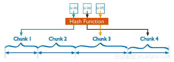 Hash分片是根据用户的shard key计算hash值(64bit整型),根据hash值按照『范围分片』的策略将文档分布到不同的chunk