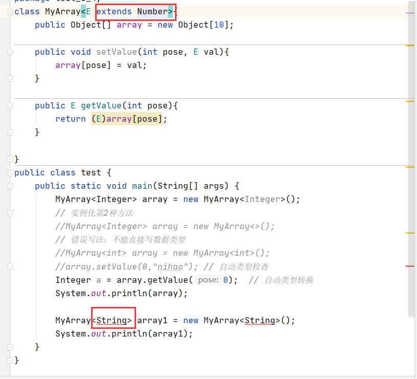 上面的 extends Number 指定了传入参数 E 的一个界限,规定传入的参数只能是 Number 或者是 Number 的子类。