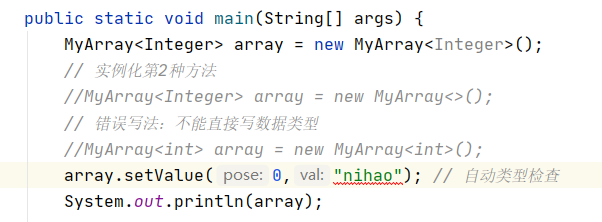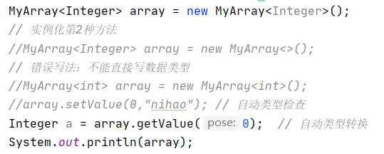 (实例化的第2种方法,即省略了后面的类型,因为编译器可以根据上下文进行类型推导,因此可以省略类型实参的填写。)