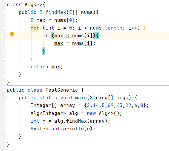 //int r = alg2.<Integer>findMax(array); // 两种写法