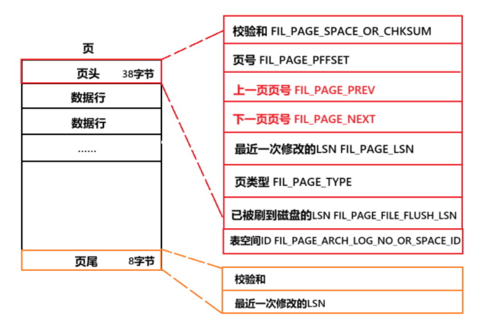 此处只关注 上一页页号 和 下一页页号, 通过这两个属性可以把页和页之间链接起来,形成一个双向链表。