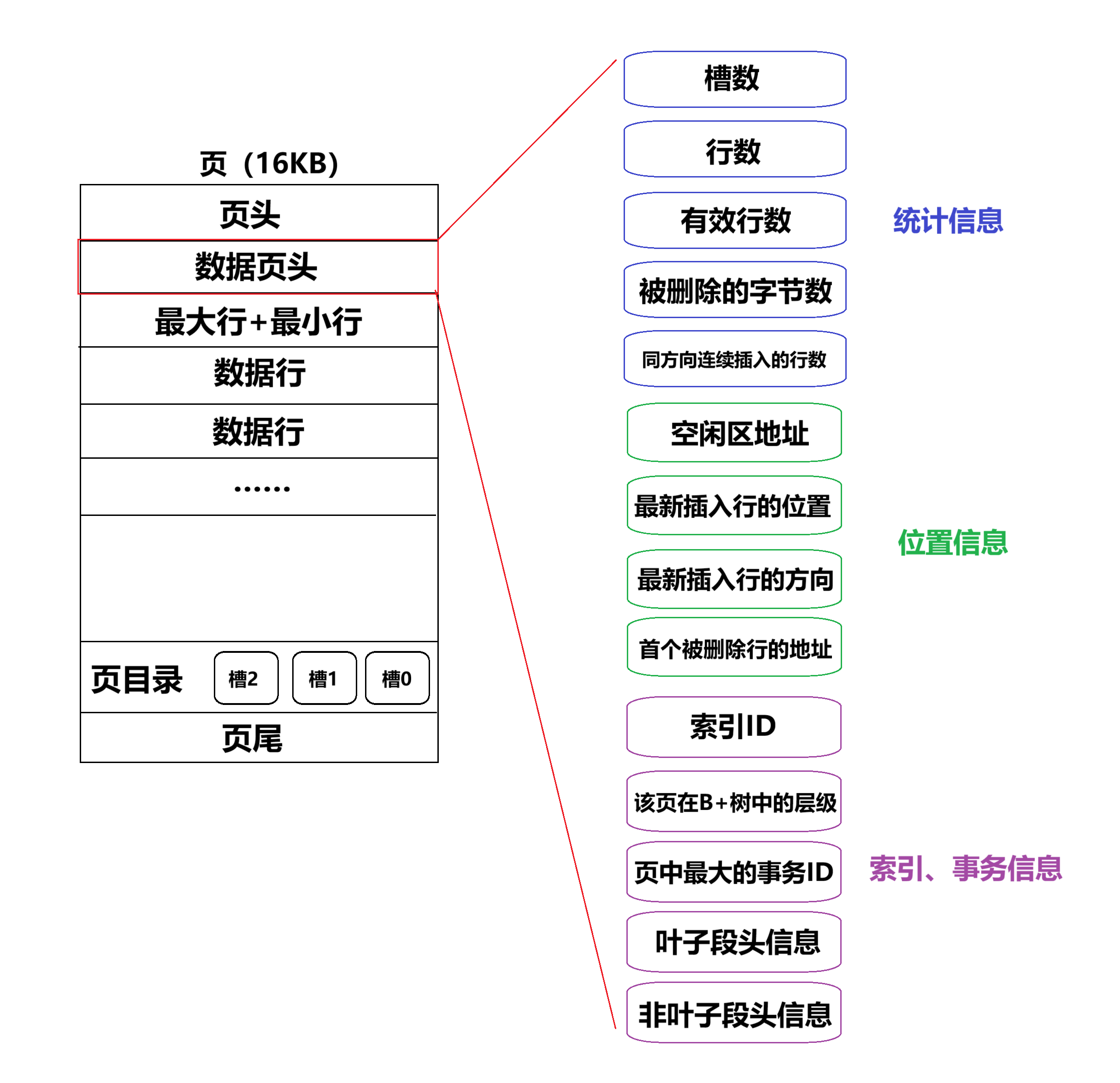 在 MySQL 中有多种不同类型的页,最常用的是 用来存储数据和索引的“索引页”,也叫做“数据页”,但无论是哪种类型的页都会包含页头和页尾。