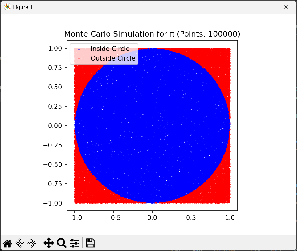 print(f"Estimated value of π: {pi_estimate}")