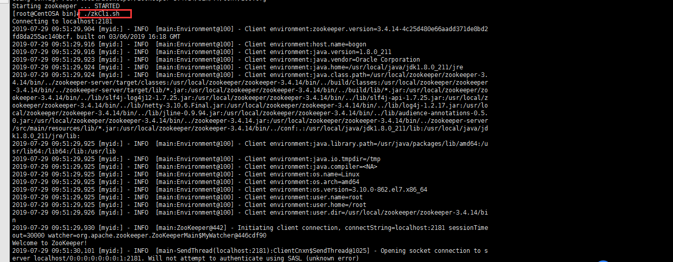 6、在bin文件夹下启动zookeeper 服务:./zkCli.sh【命令】