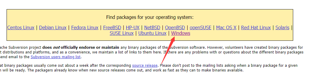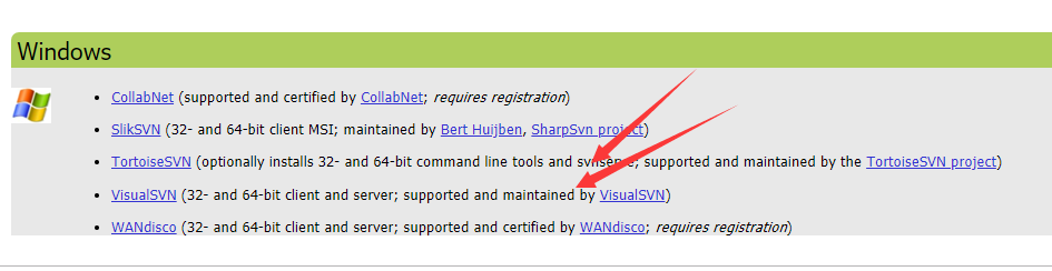 windows版本 下载链接:http://subversion.apache.org/packages.html