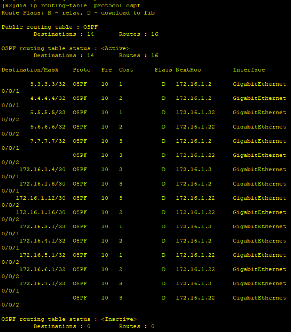 [R7-GigabitEthernet0/0/0]ip add 172.16.1.14 30