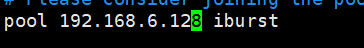 pool ntp.aliyun.com iburst 将第三行改为阿里云的服务器