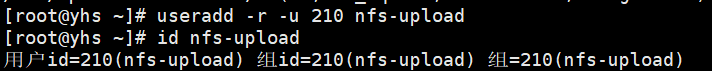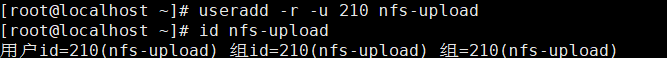 2.创建一个nfs-upload用户 [root@localhost ~]# useradd -r -u 210 nfs-upload