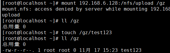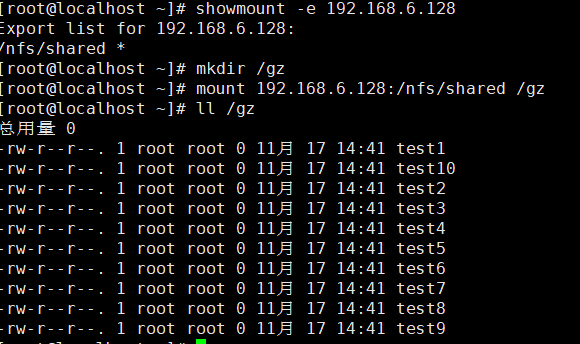 2.创建一个挂载目录 /gz,将 /nfs/shared 文件系统挂载到 /gz 目录
