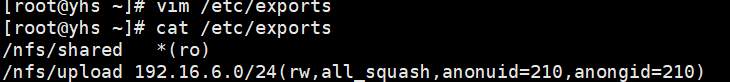 2.编辑 nfs 主配置文件 vim /etc/exports