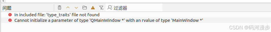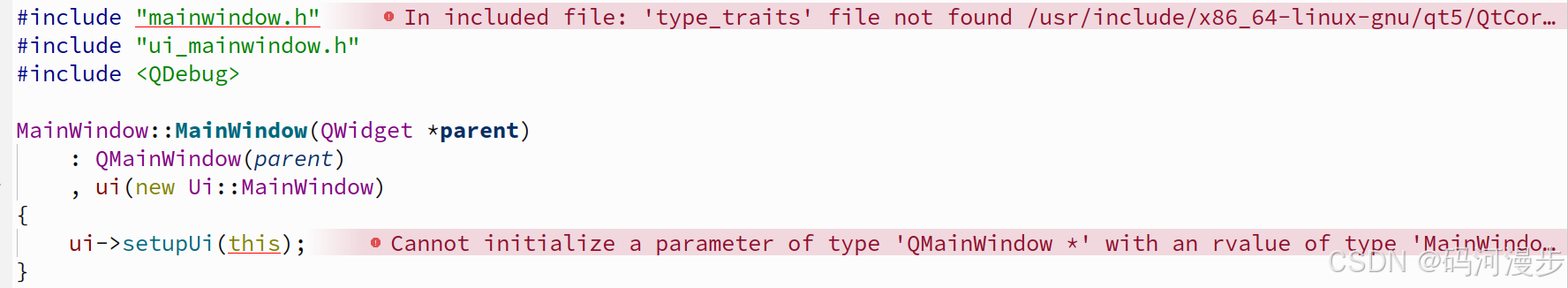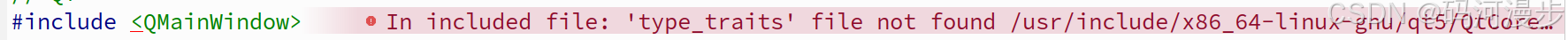 1、这是一个奇怪的报错,error: In included file: 'type_traits' file not found,导致了#include <QMainWindow>都爆红,然后相关的很多东西都爆红,虽然可以编译通过并运行,但是看着不舒服
