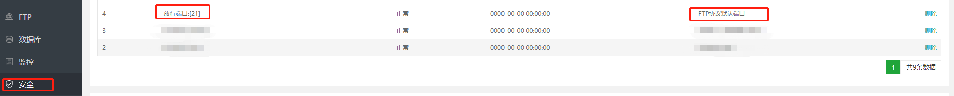 第二步、查看宝塔的安全端口有没有放行 21端口