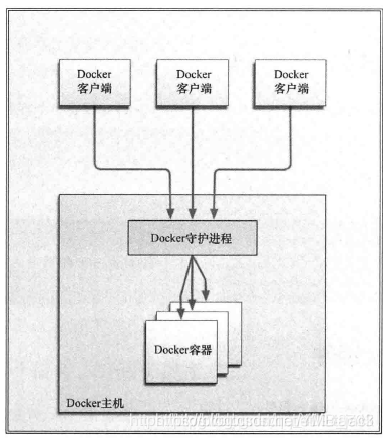 Docker是一个Client-Server结构的系统,Docker守护进程运行在主机上, 然后通过Socket连接从客户端访问,守护进程(Docker Daemon)从客户端接受命令并管理运行在主机上的容器。