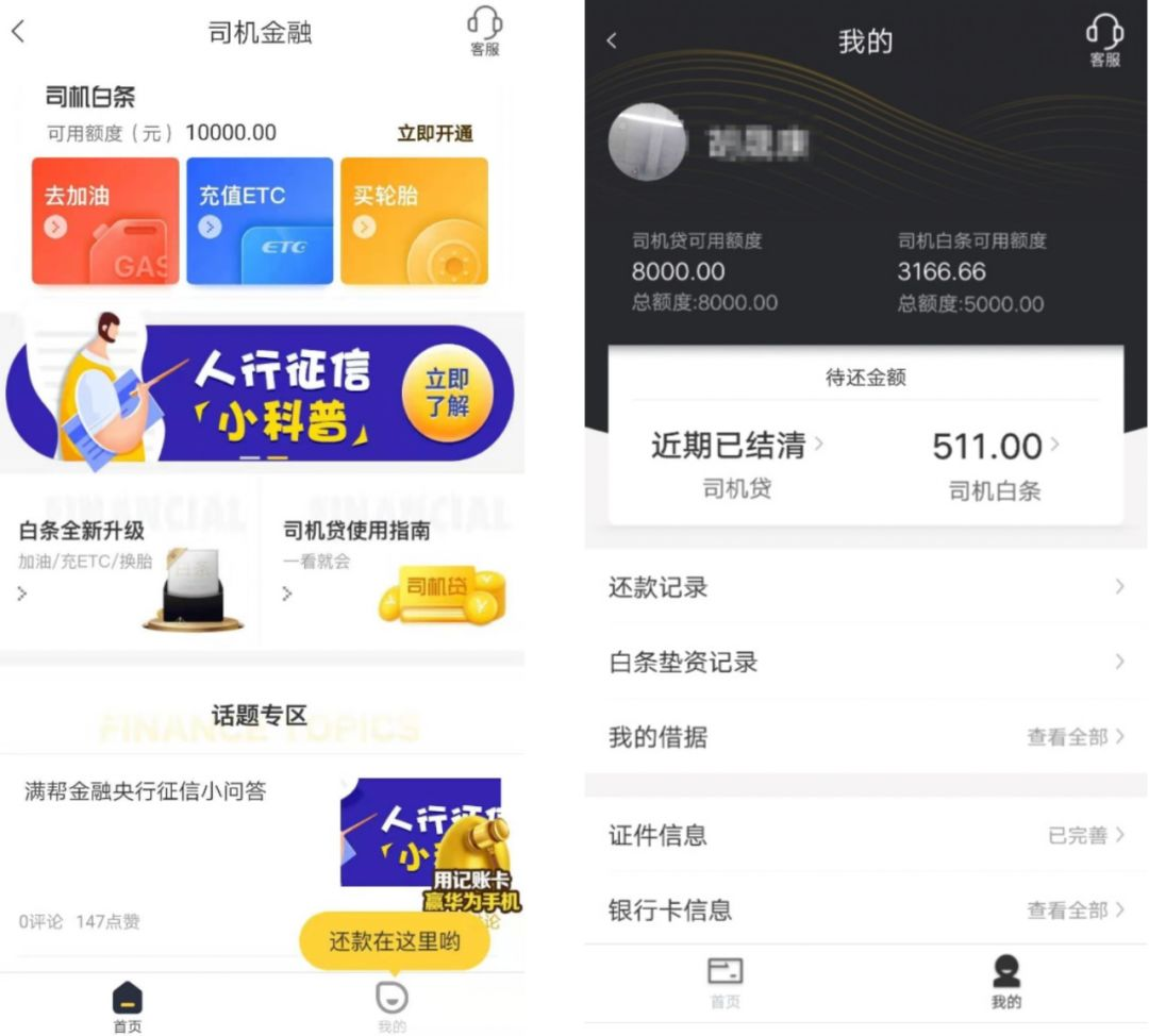 还款方面,设有专门的还款入口,司机可以查询还款期数、还款金额、还款进度。
