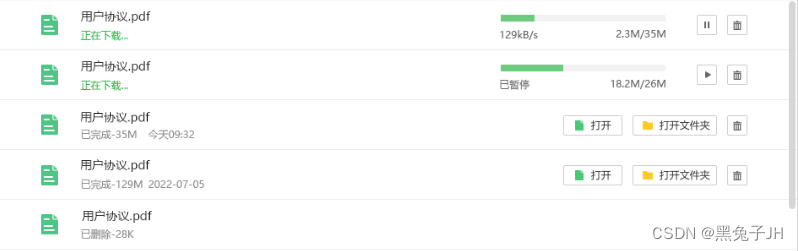 这里实现了拓展浏览器的下载功能,实现一个可视化的下载列表,可以控制下载、暂停、删除、打开文件位置、打开文件等功能。