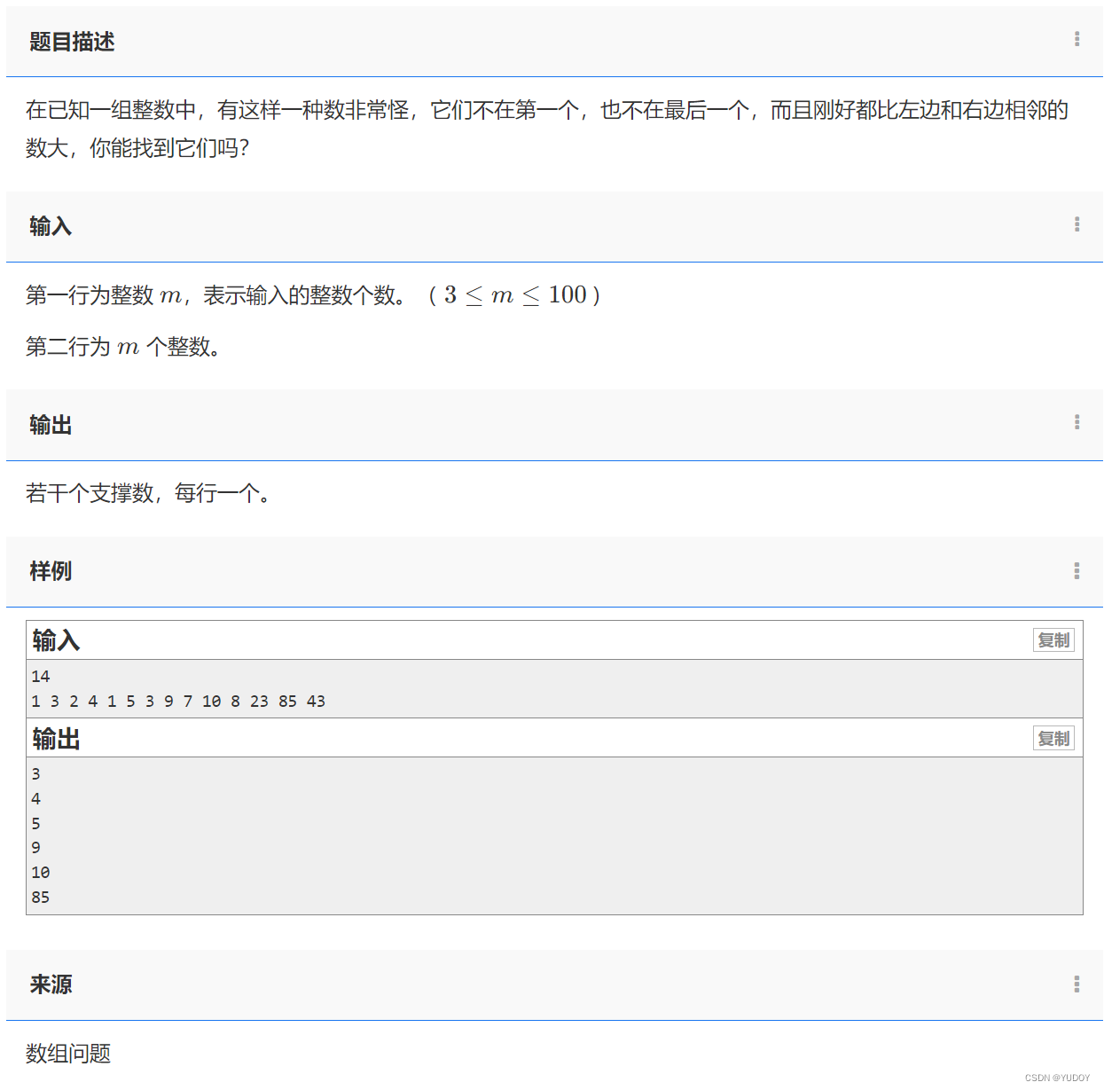 在已知一组整数中,有这样一种数非常怪,它们不在第一个,也不在最后一个,而且刚好都比左边和右边相邻的数大,你能找到它们吗?