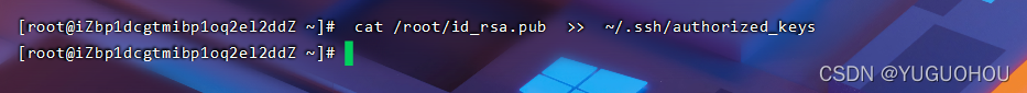 cat /root/id_rsa.pub >> ~/.ssh/authorized_keys