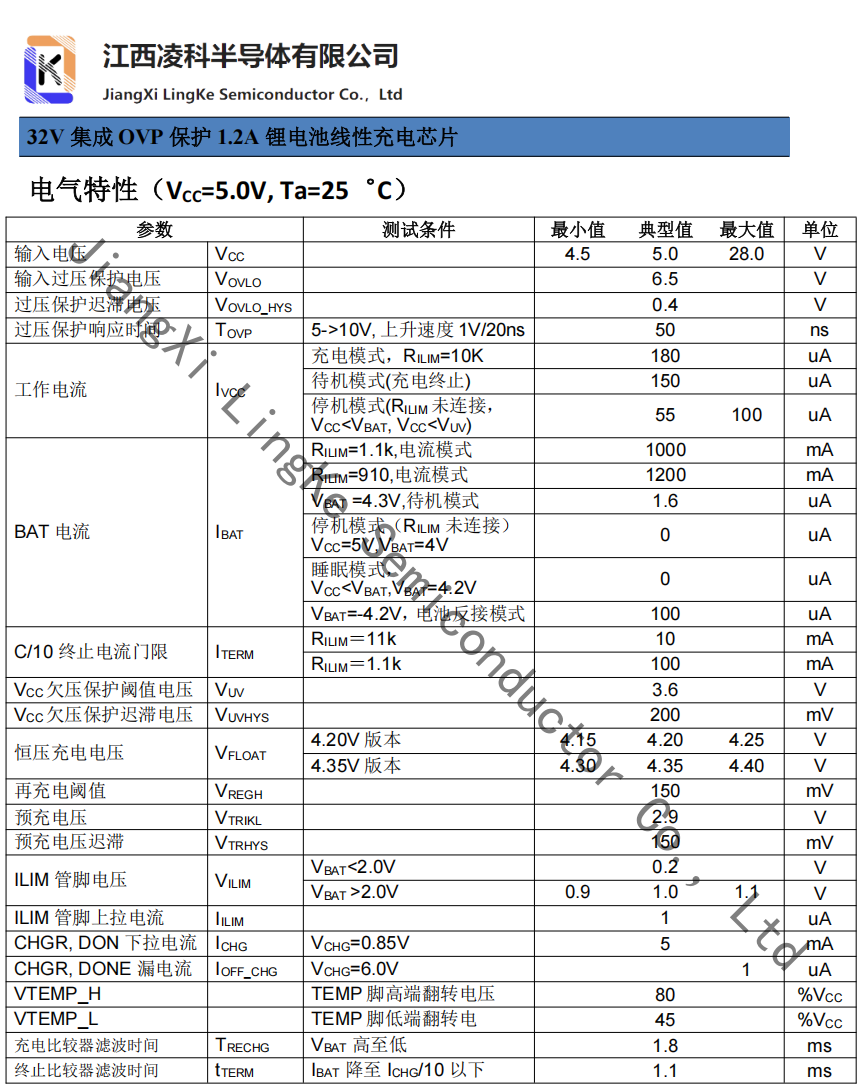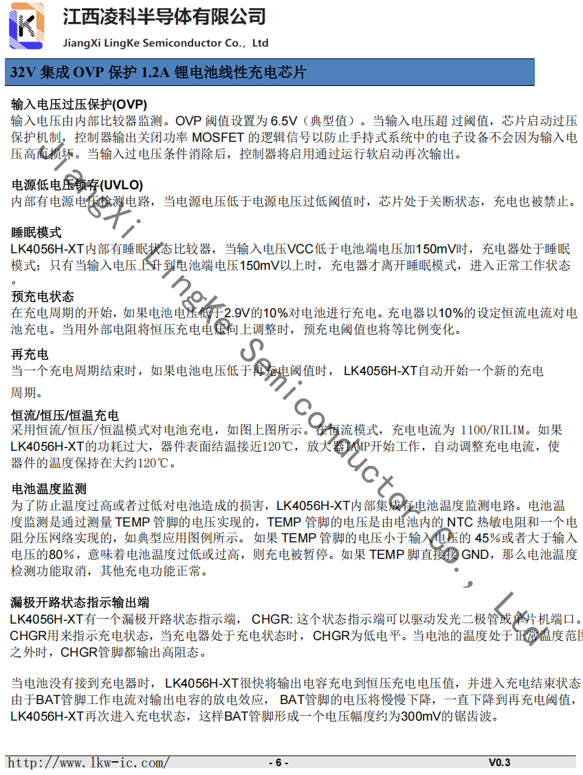 LK4056H-XT32V—集成OVP保护1.2A锂电池线性充电芯片