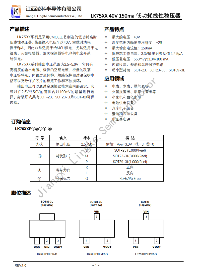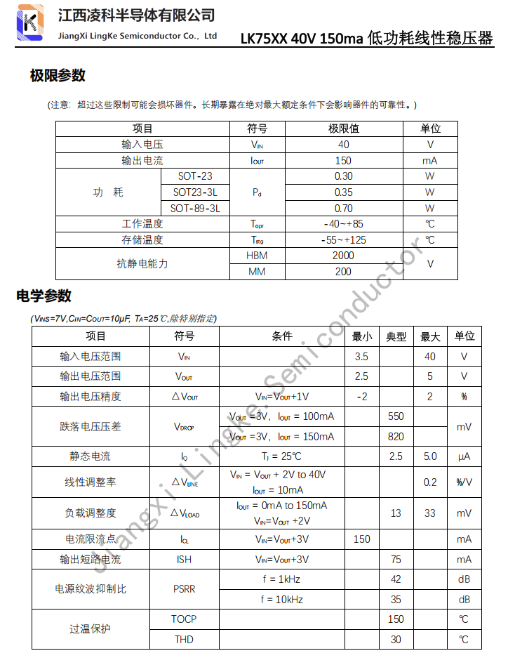 LK75XX 40V 150ma 低功耗线性稳压器