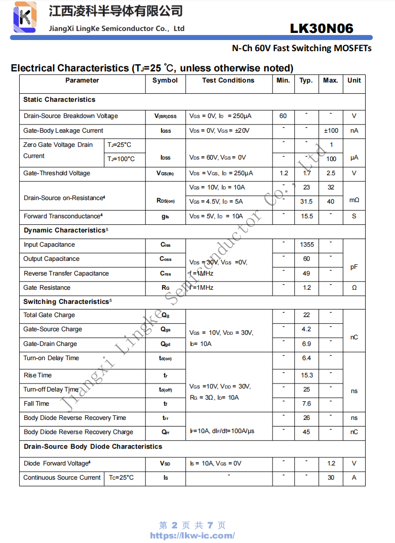 LK30N06 MOSFET参数解析