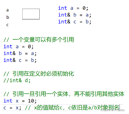 2.引用在初始化时引用一个实体后,不能再次引用其他实体,只能赋值。