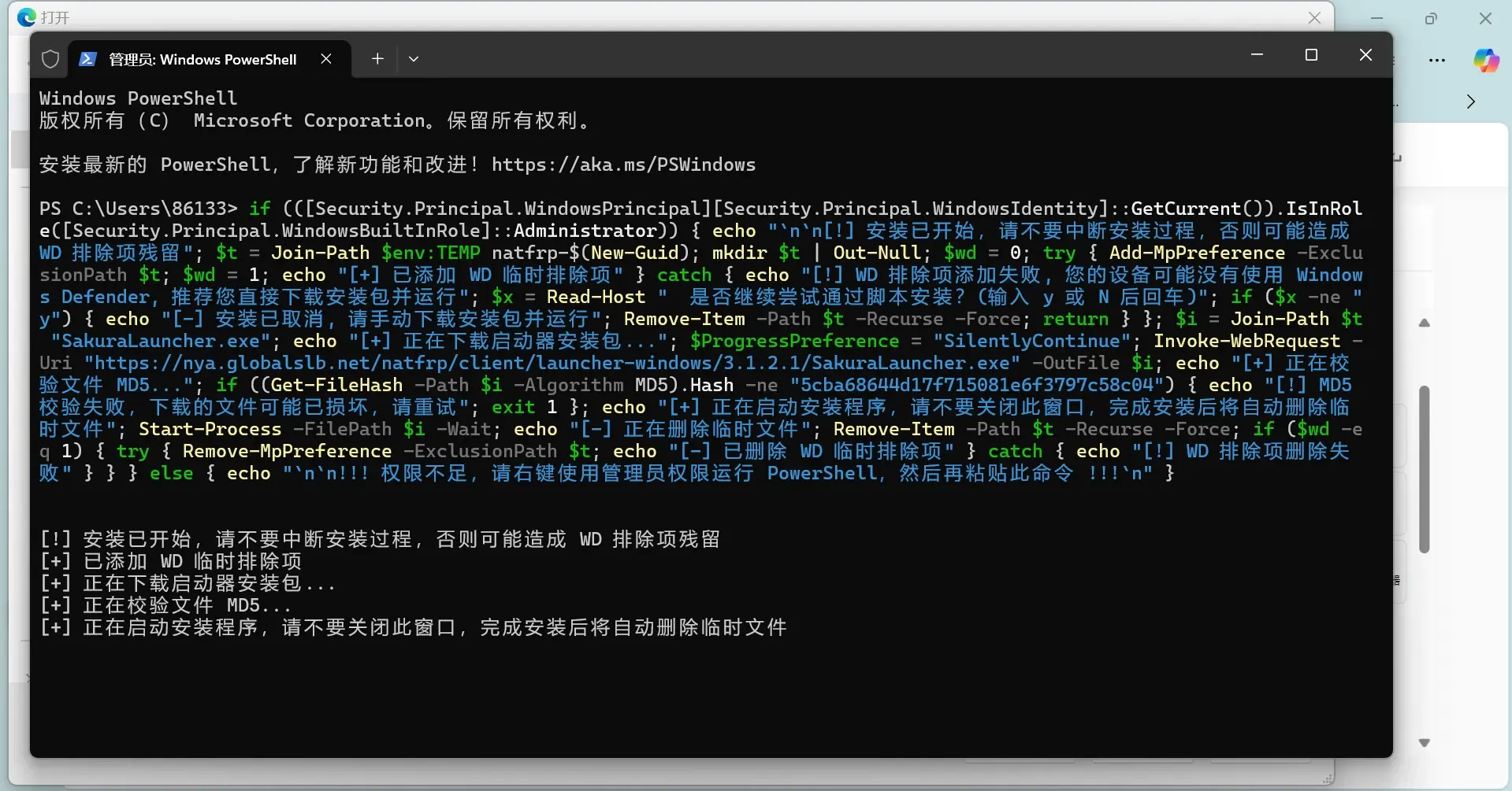 粘贴此命令后点击回车执行安装程序。
