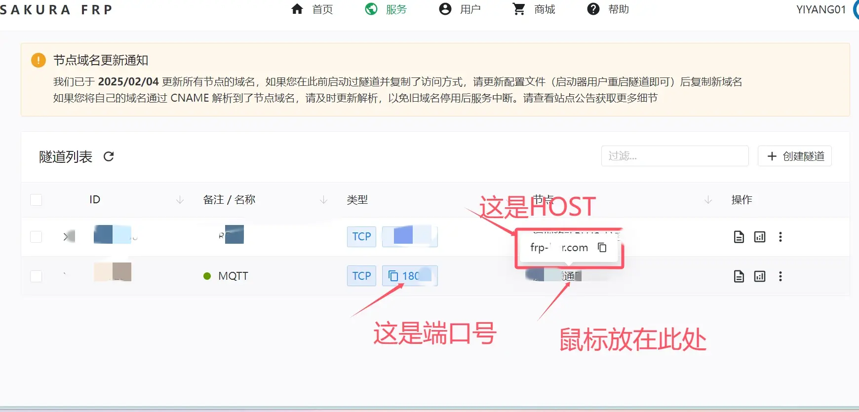3️⃣ 📝记住生成的隧道域名(HOST)和端口号(后续要用!)