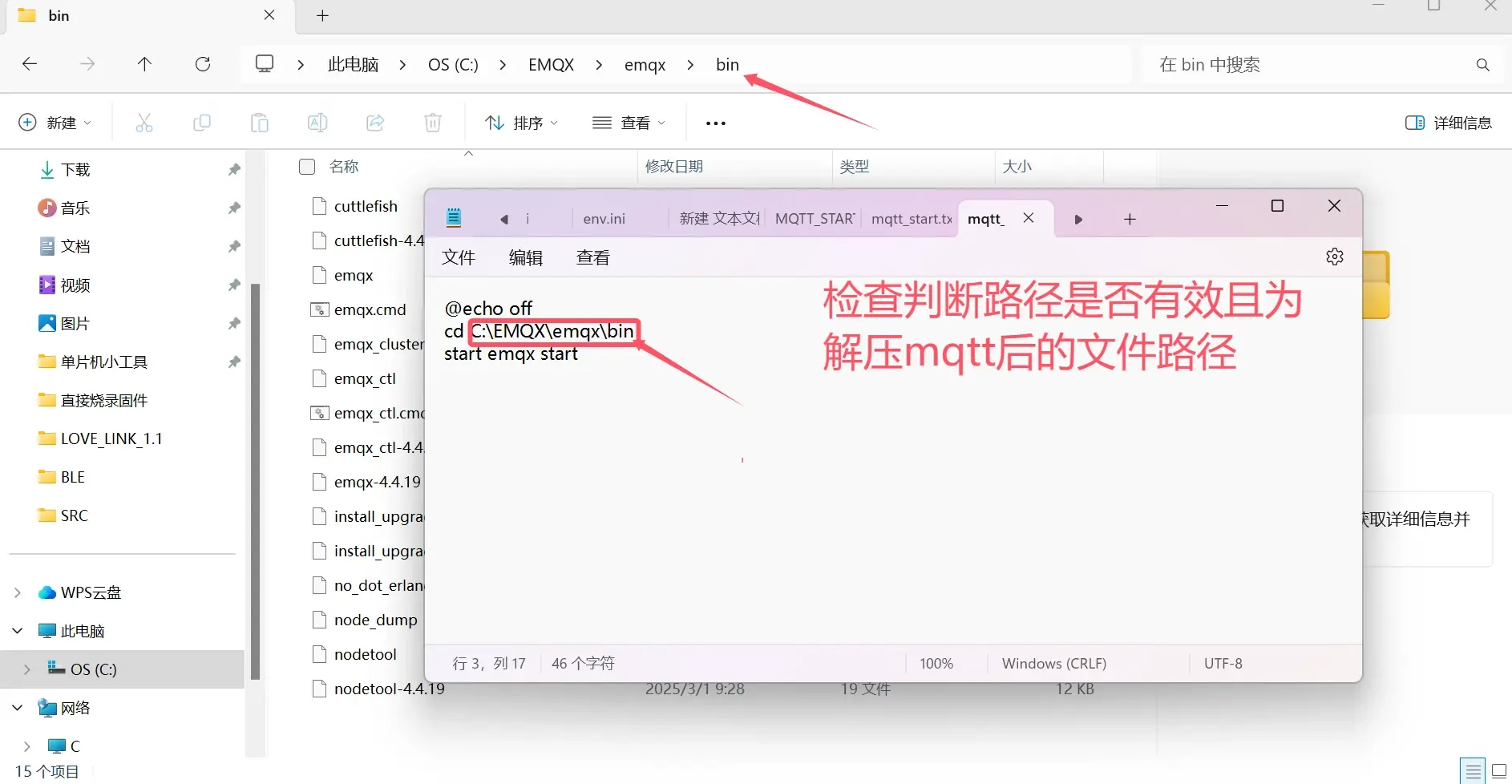 🔹 检查路径配置是否有效,若无效改为mqtt解压后的bin目录地址