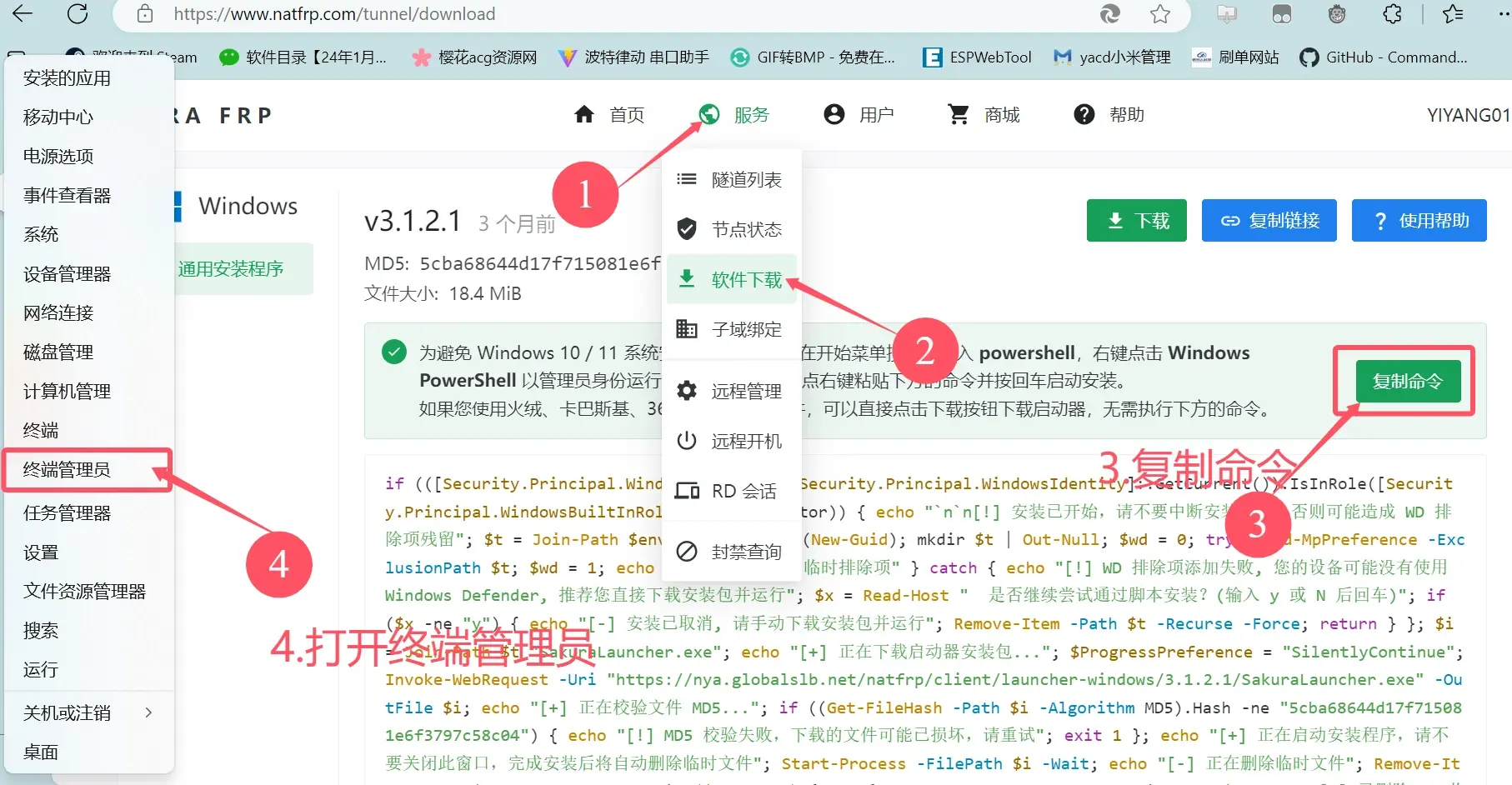 完成隧道创建后下载frp客户端。并安装