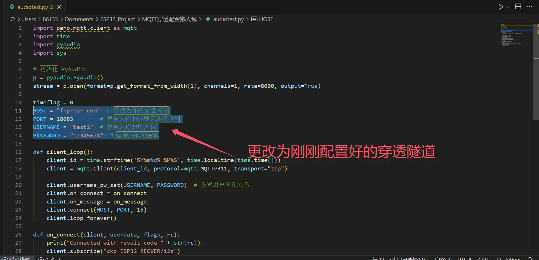验证:打开懒人工具包中的audiotest.py,更改以下变量