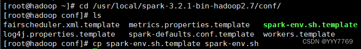3.进入解压后的spark安装目录的/conf目录下,复制spark-env.sh.template文件并重命名为spark-env.sh