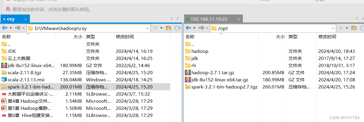 1.将spark安装包上传到linux虚拟机的/opt目录下