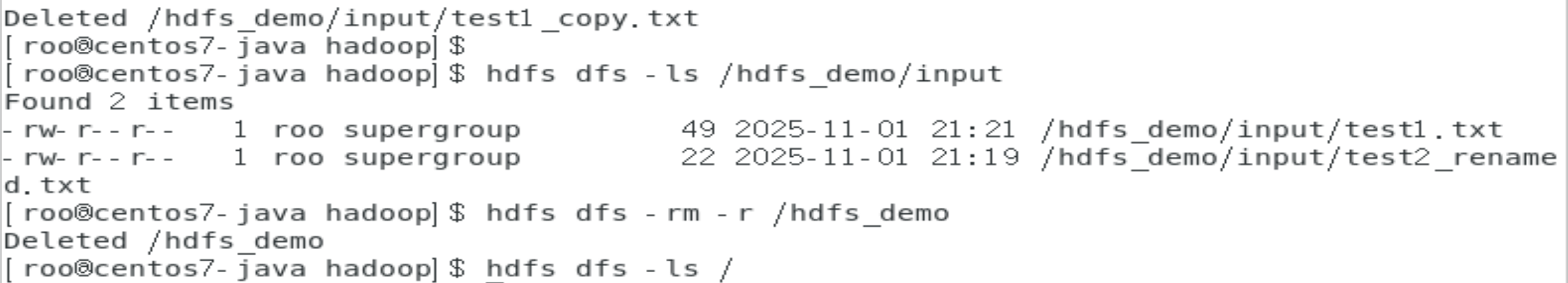 hdfs dfs -rm /hdfs_demo/input/test1_copy.txt