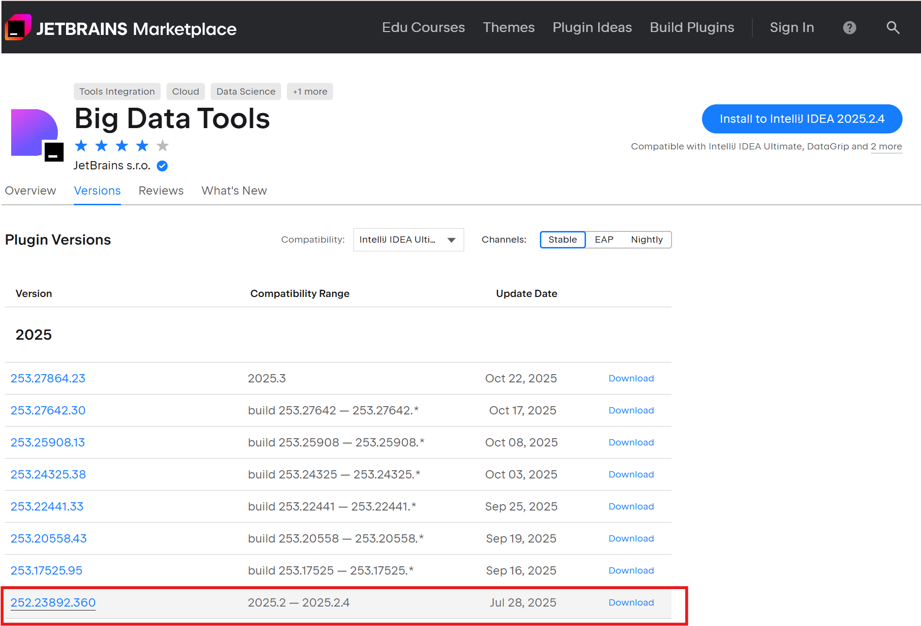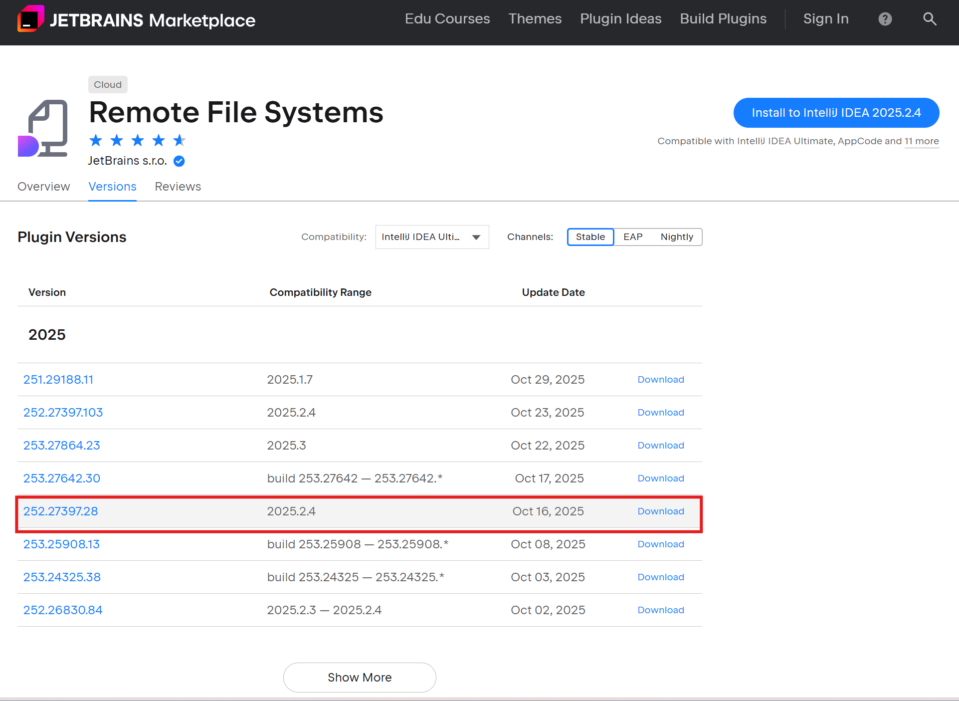 # 重要!确保插件版本与IDE兼容 # 我的IDE版本:IU-252.27397.103 # 对应插件版本:252.23892.360 -