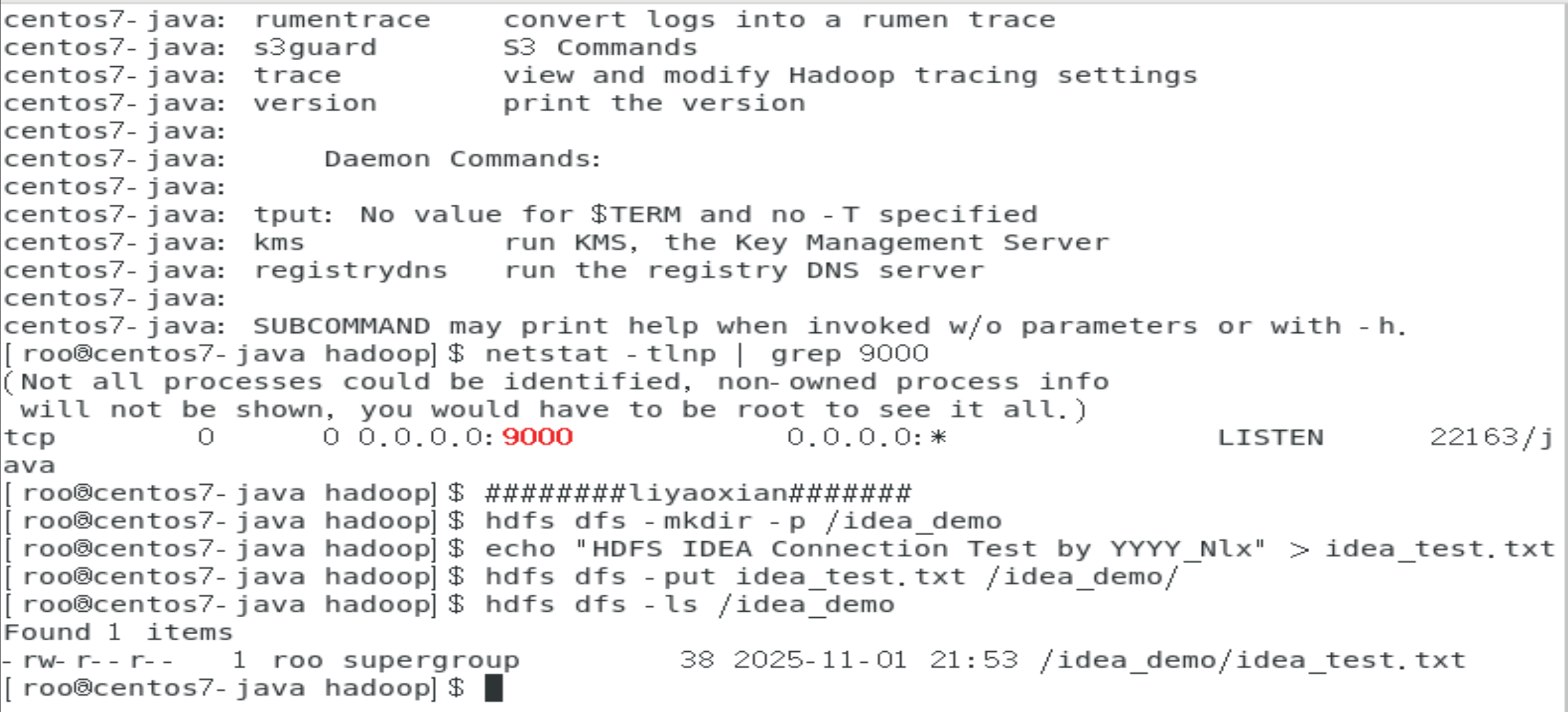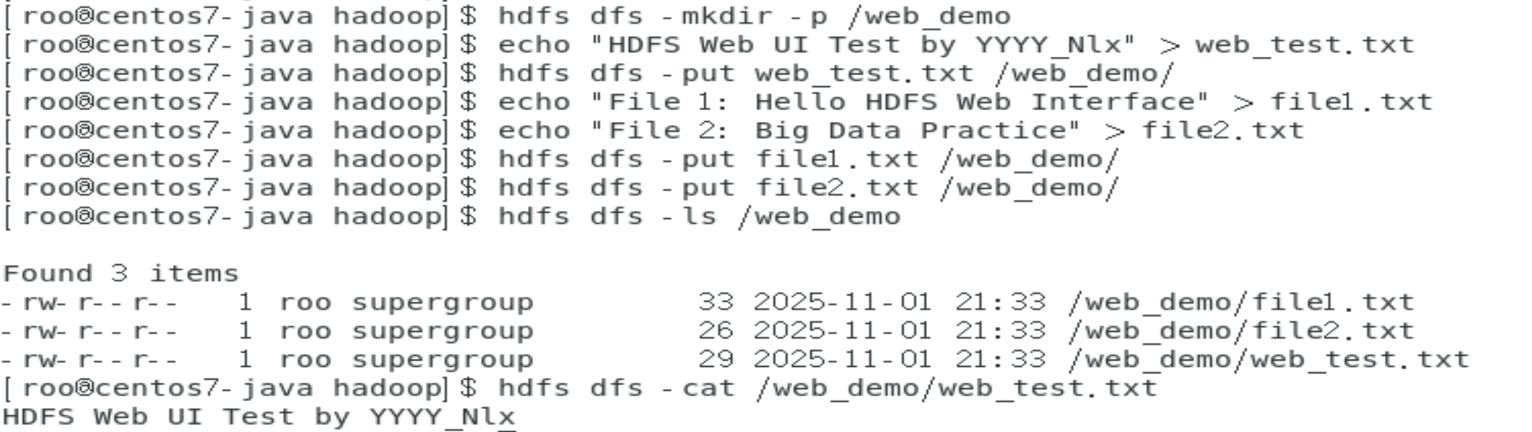 echo "hello hdfs from YYYY_Nlx" > test1.txt
