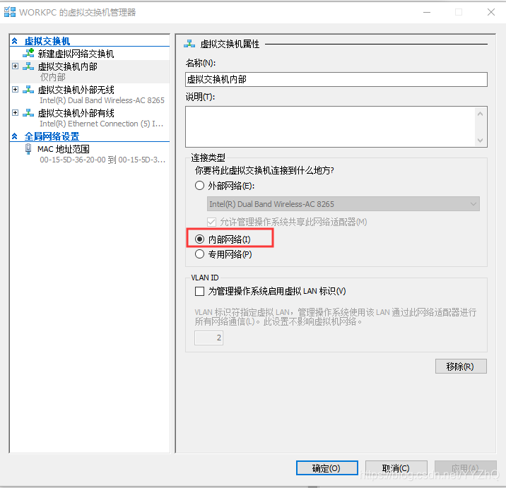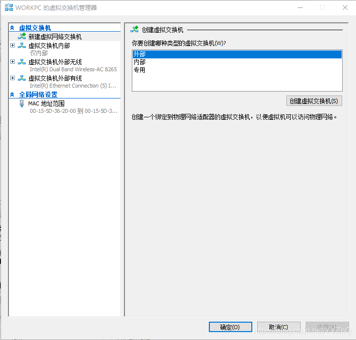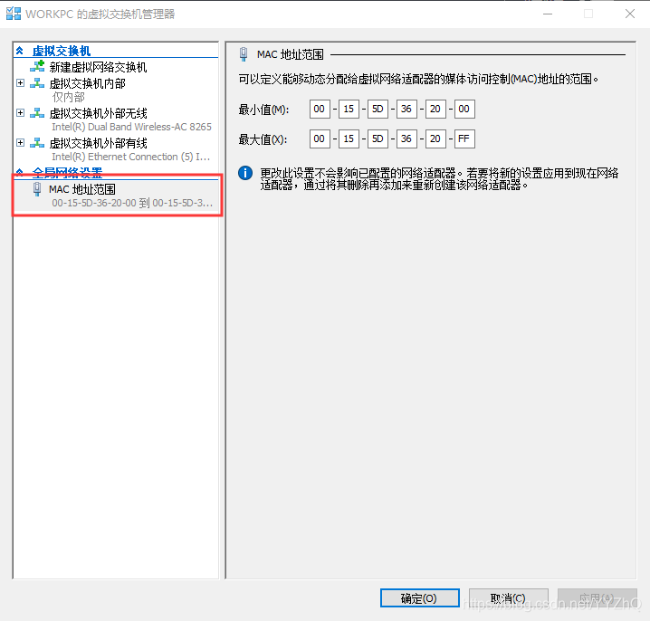 这个地址范围,可以从Hyper-v的虚拟交换机管理器中看到。