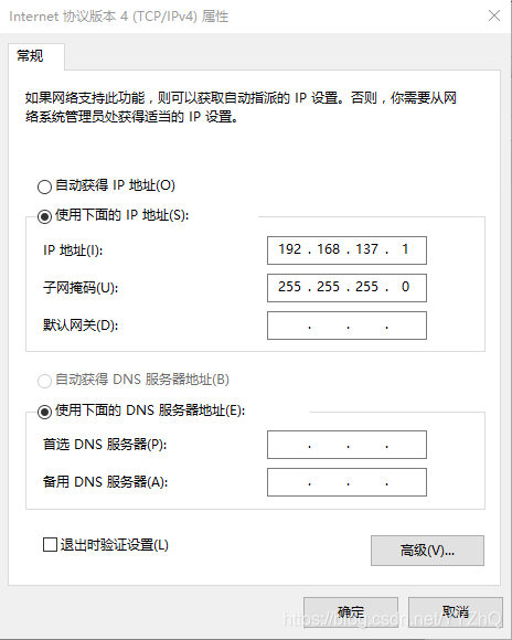 右键刚刚创建的内部网络vEthernet属性,双击Internet协议版本4(TCP/IPv4),如下配置。