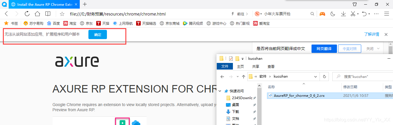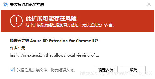 1.1.1 如果是搜狗的直接将解压好的拖进浏览器,然后信任此文件,确认安装
