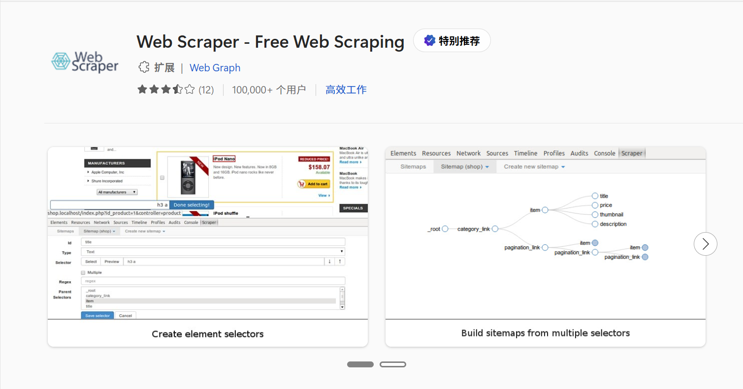 核心功能:Chrome 插件即装即用,点选元素抓取数据,支持 CSV/JSON 导出。