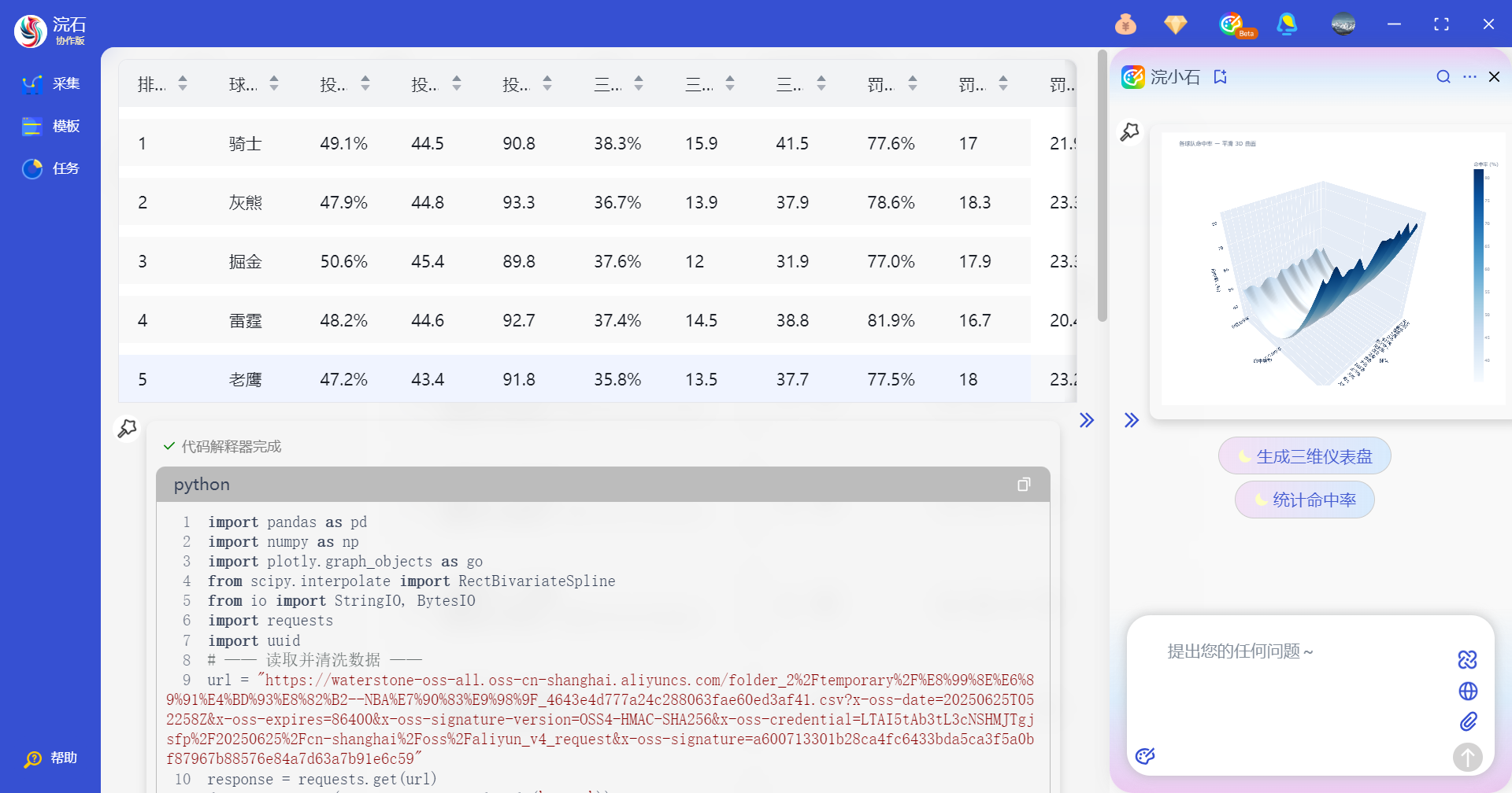 - AI 助理自动清洗数据、生成分析报告(含思维导图、PDF 趋势预测);