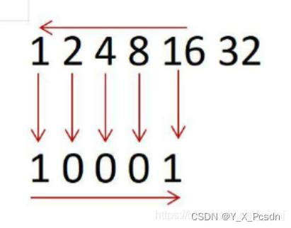即从左往右排列得出二进制数10001。