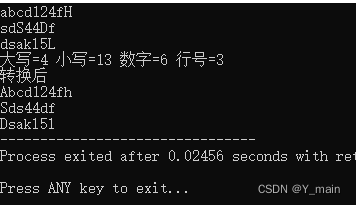 printf("\n大写=%d 小写=%d 数字=%d 行号=%d\n",A,a,num,sum);