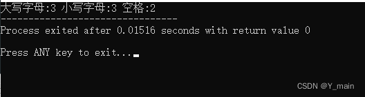 printf("大写字母:%d 小写字母:%d 空格:%d ",lower,upper,space);