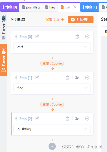 新发布的 Web Fuzzer 序列 (Web Fuzzer Sequence),使用 Fuzzer 序列可以轻松构建一整个测试工作流。这一回我们将综合利用 Yakit 现有的功能串联起 CSRF token 获取,flag 获取到提交 flag 这几个工作,最终快速构建起一个一键收割 flag 的 AWD 脚本。