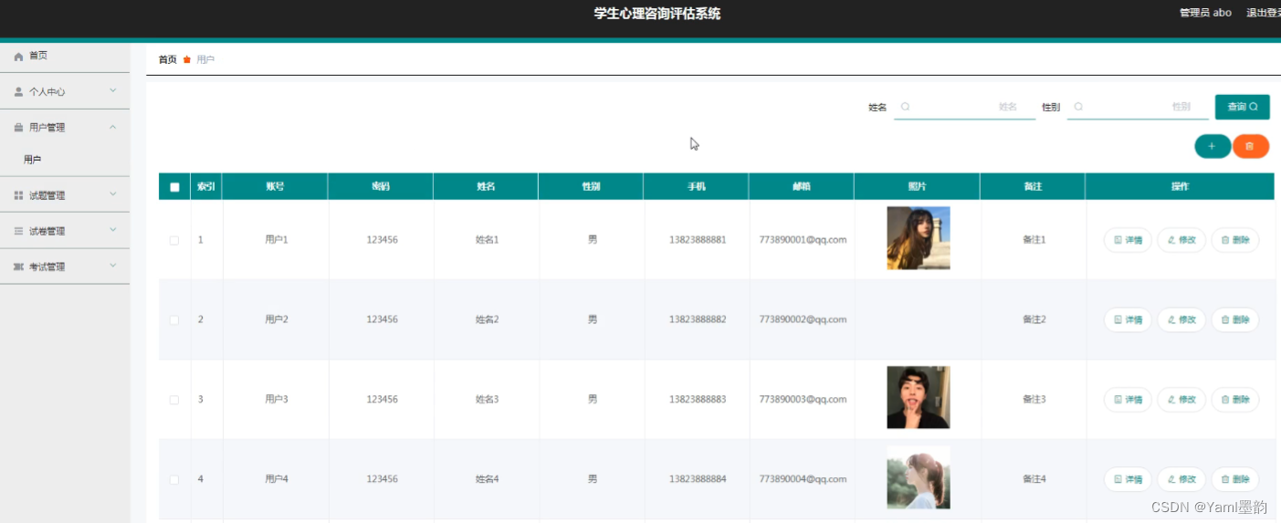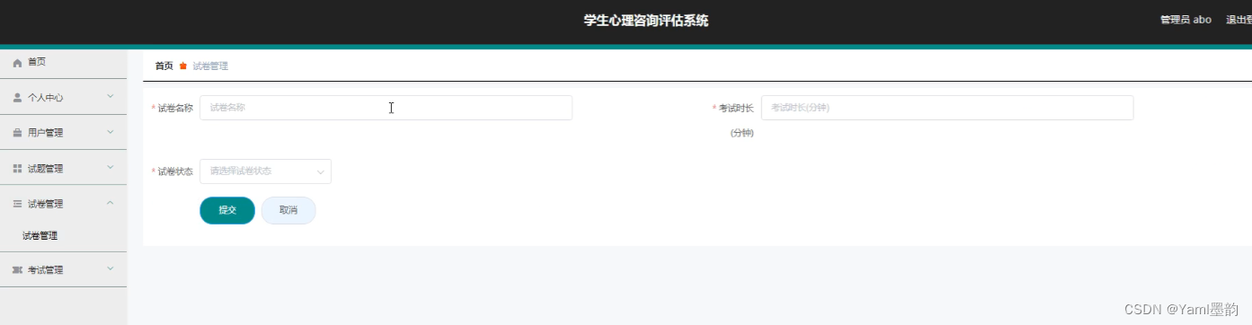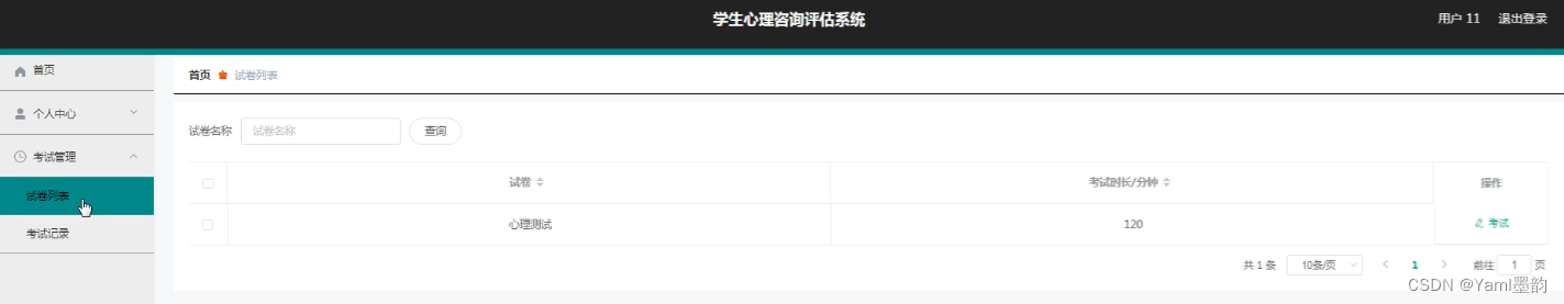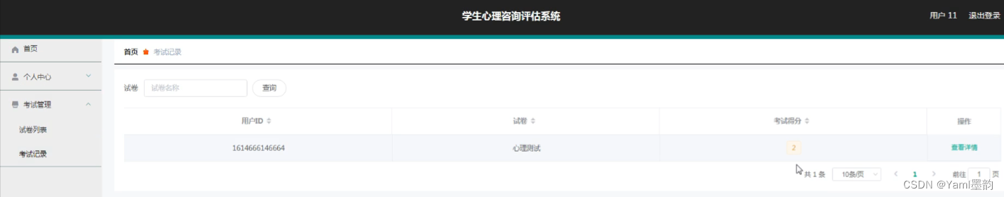 - 考试管理:管理考试流程,例如设置考试时间、发布考试通知、查看考试成绩等。此外,还可以对考试记录进行查询和分析,以评估测试的效果和学生的心理状况。